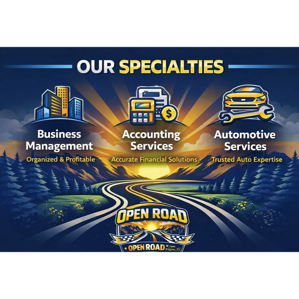 Open Road Enterprises, LLC specializes in business management, accounting services, and automotive expertise. Combining financial precision with hands-on industry knowledge, we help businesses stay organized, profitable, and efficient—while delivering trusted automotive services that keep operations running smoothly and customers confidently on the road.
